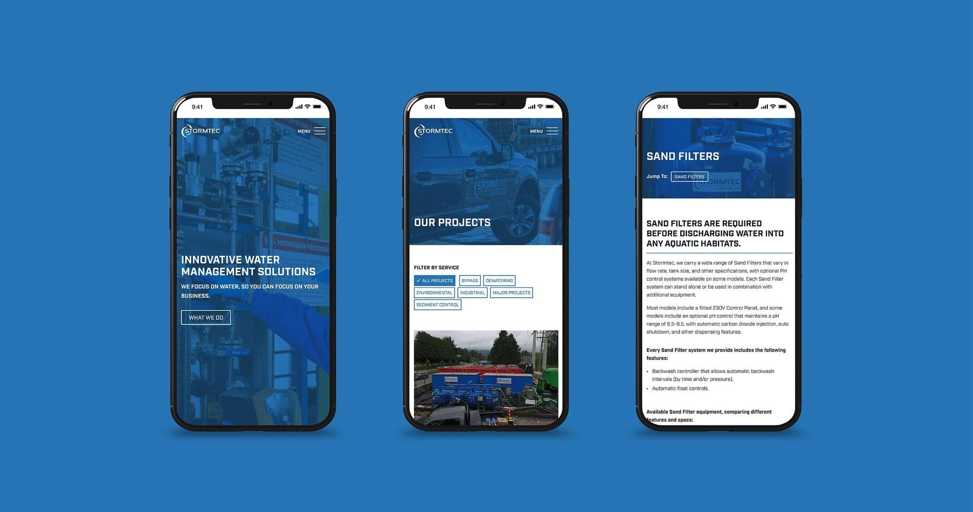Stormtec, one of British Columbia's leading water management companies, faced the challenge of operating in an industry often perceived as commoditized. Differentiation based on value-added services and personalized customer experiences was crucial, but they struggled to communicate their unique offerings. Stormtec needed an update to their existing website in order to reflect their evolving brand identity and offerings. Through working with them, we also discovered that they would greatly benefit from sales materials, video, and other collateral to bring consistency and cohesiveness to their brand.